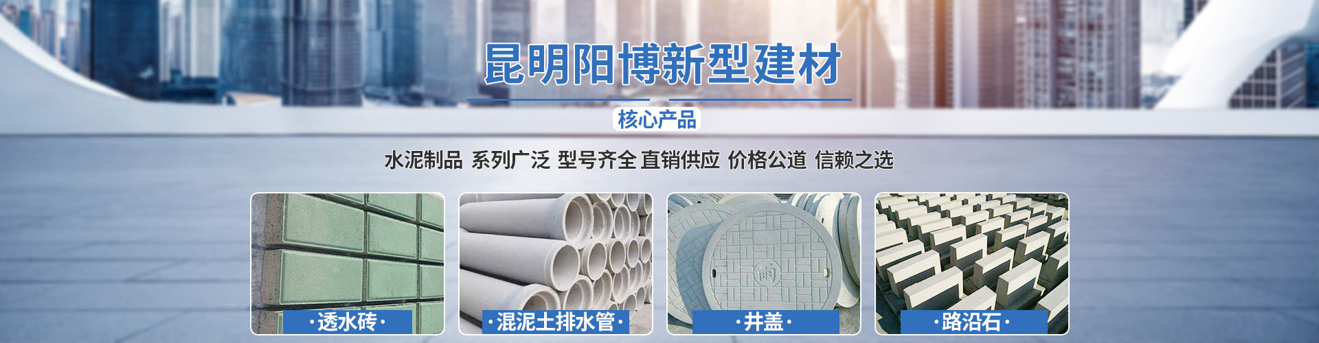 昆明陽博新型建材有限公司(原星貿(mào)水泥制品廠)始建于2007年,現(xiàn)有西三環(huán)總廠、桃園制管分廠、沙靠構(gòu)件分廠,專業(yè)生產(chǎn)和銷售鋼筋混凝土排水管、人行道磚、透水磚、落水篦子、蓋板、路沿石等各類混凝土預(yù)制構(gòu)件。經(jīng)過十余年發(fā)展,公司取得了“全國工業(yè)產(chǎn)品生產(chǎn)許可證”、“混凝土預(yù)制構(gòu)件三級(jí)資質(zhì)”、“試驗(yàn)室證書”等資質(zhì),并先后獲得了云南省混凝土協(xié)會(huì)和云南省水泥制品協(xié)會(huì)授予的“優(yōu)秀產(chǎn)品企業(yè)”、 “企業(yè)發(fā)展獎(jiǎng)”、 “突出貢獻(xiàn)獎(jiǎng)”、 “副主任委員單位”等榮譽(yù)。