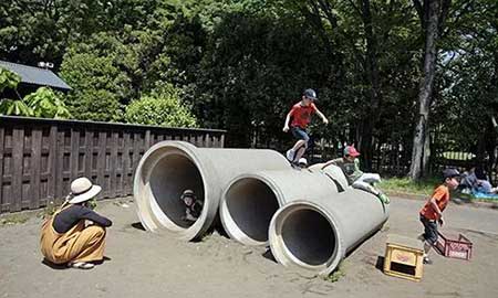 在足夠的場(chǎng)地里用水泥管做元素